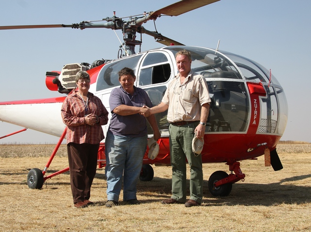 “One day I was sitting at my house close to Petit when a white Alouette, ZU-BMF flew overhead. I knew it was Gordon Hayward, a SAA Pilot that I had befriended. I phoned him and asked him to return to pick me up and so at fifty I had my first flight in a Helicopter and I was hooked. We did a circuit and I said to Gordon that I want an Alouete and was going to buy one. He probably thought I was joking. I mentioned this to Robert Ossner, a friend who flew a 182 based at Petit Airfield and he said that he had seen one advertised in African Pilot and I immediately phoned and made arrangements to go and view it.” Hugo said.
