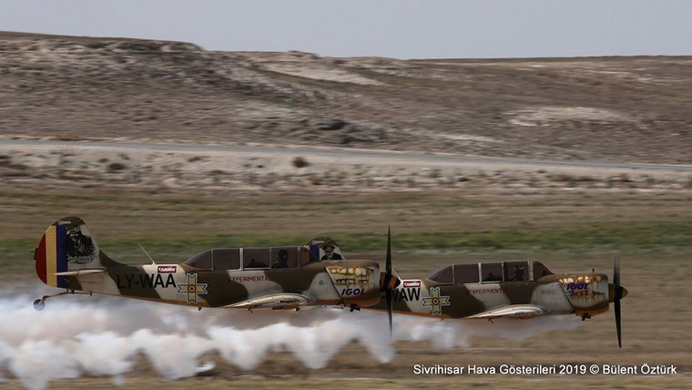 The two-day program was packed with action and a variety of performers including the Turkish Air Force. Flippie and Ben's display was one of the highlights, so much so that they did a second slot flying in formation with the Harvard and Yaks.