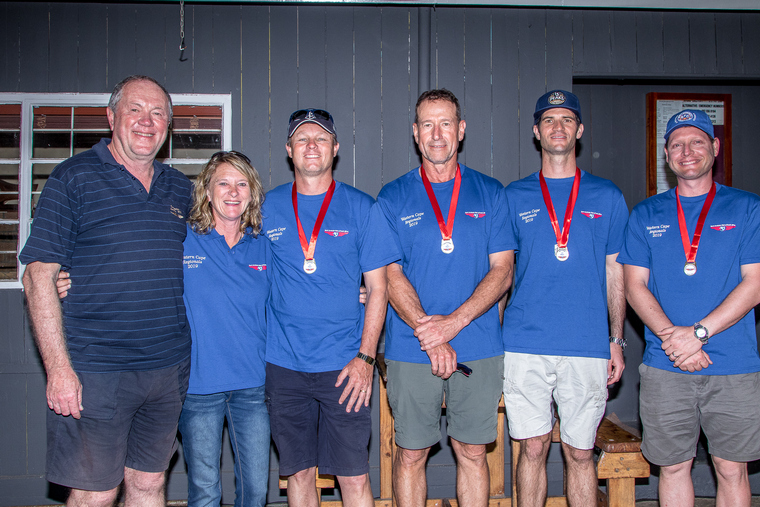 Pieter Venter, Swellengrebel Flying Club chairman and Annie Boon SAC with the section winners. Barry Eeles (Unlimited), Mark Oostingh (Intermediate), Alewyn Burger (Sportsman) and Marko Nel (RV)