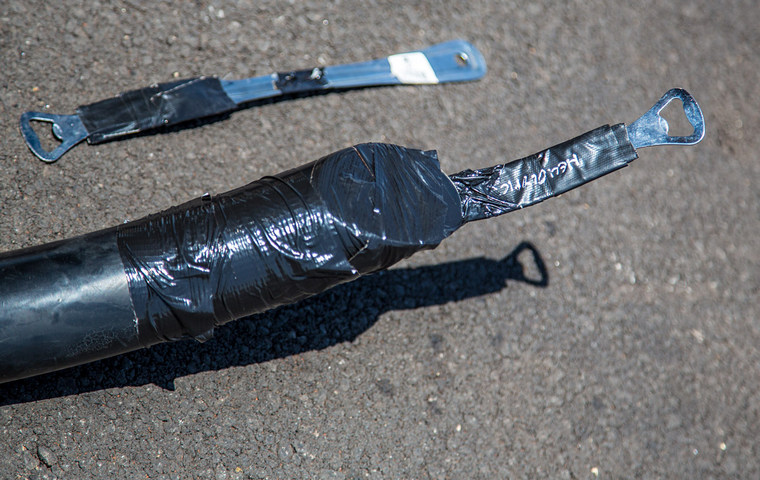 The skids lent themselves well to attaching the bottle opener and "cone ring probe" with duct tape and cable ties, on the front of each skid.