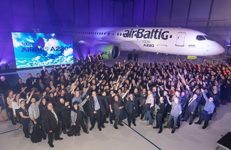 Airbus has celebrated the 100th A220 aircraft produced for a customer during a ceremony at the aircraft programme's headquarters in Mirabel, Canada. The aircraft, an A220-300, destined for Riga, Latvia-based airBaltic, features a brand new and comfortable cabin layout with 149 seats plus a modernised livery.