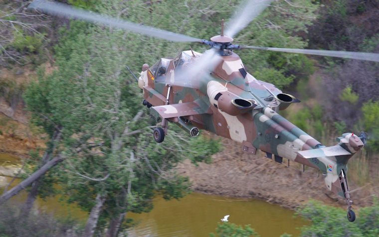 Avoiding Hostile Fire: The ability to fly the nap of the earth is in itself a huge hostile avoidance system but the Rooivalk has many other tricks up its sleeve to protect itself from both ground and air risks. Electronically, it has the capability to detect any radar or laser targeting. It has an air-to-air missiles capability, a potent 20mm canon, long weapon stand-off ranges, high excess power margin in 'hot and high' conditions and is highly manoeuvrable.