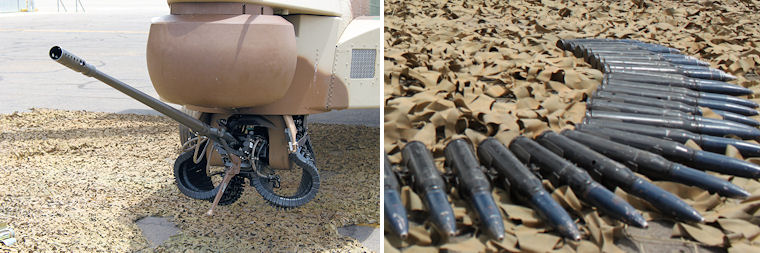 The 20mm cannon controlled with the HMSD or the aircraft main sight is fed from two different ammo bins allowing the use of different ammunition types depending on the target. The ammunition is also compatible with the 20mm ammunition used by the South African Army adding to its versatility.