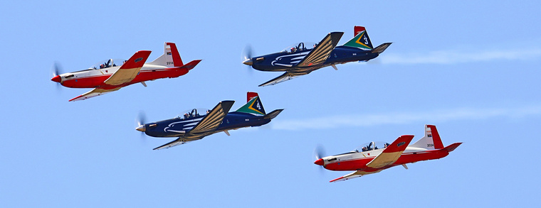 The pride of the SA Air Force was up next with a formation of eight aircraft - four Gripens from 2 Squadron and four Hawk Mk 120's from 85 Combat School.