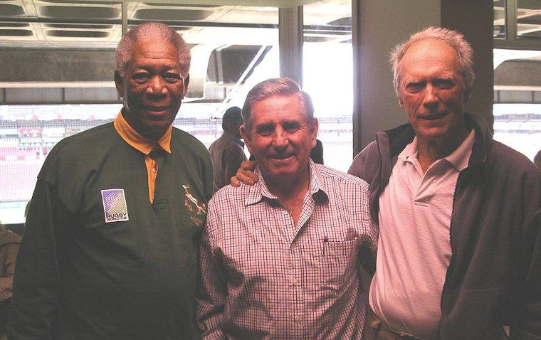 Clint Eastwood contacted Laurie and invited him to help in the production of “Invictus”, a movie made about Nelson Mandela at the time of the Rugby World Cup. While filming the movie Laurie and Morgan Freeman became good friends and are still in regular contact. Laurie questioned Clint Eastwood on the phrase used in the movie “Let the record show I have taken control of the aircraft”, Mr Eastwood's answer to this was a humoristic “this is Hollywood”.