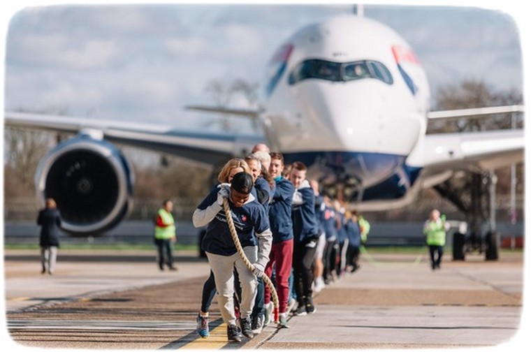 British Airways' week of Sport Relief fundraising events has taken off by achieving a GUINNESS WORLD RECORDS® title for the Heaviest Aircraft Pulled Over 100 Metres by a team (mixed), made up of colleagues and sporting celebrities.