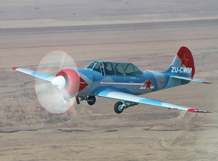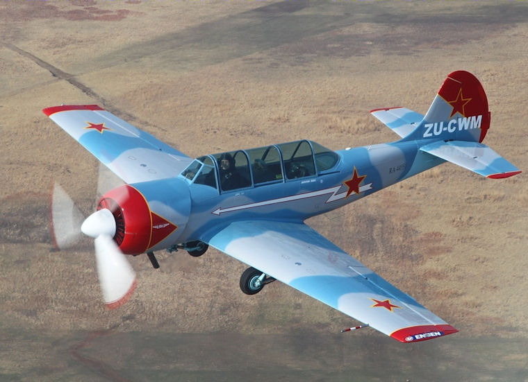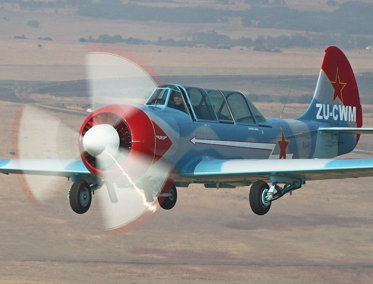 Dave and his nephew, Doug Douglas flew the Cherokee to many air shows and bush strips watching the “Skygods” having fun and pleasing the crowds with their skilful manoeuvres. One of Dave's favourites was Pierre Gouws. “We called him 'Vliegvarkie' due to his ability to fly at least a half a dozen different aircraft in a morning, Yak's, Harvards, Bosboks, L 39's, Jetrangers, Boeings and many more. I fell in love with the Yak and Robbie Beaumont convinced me to buy one. The Cherokee was sold and ZU-CWM, one of three that was brought into the country by John Wright took its place. Learning to fly a Russian aircraft is somewhat different to the American aircraft and I think I sometimes scared poor Bobby Ewing who did my conversion to death. But he persisted and I eventually got the hang of it. Robbie always made time to teach me how to loop and roll and to fly in formation.” Dave said.