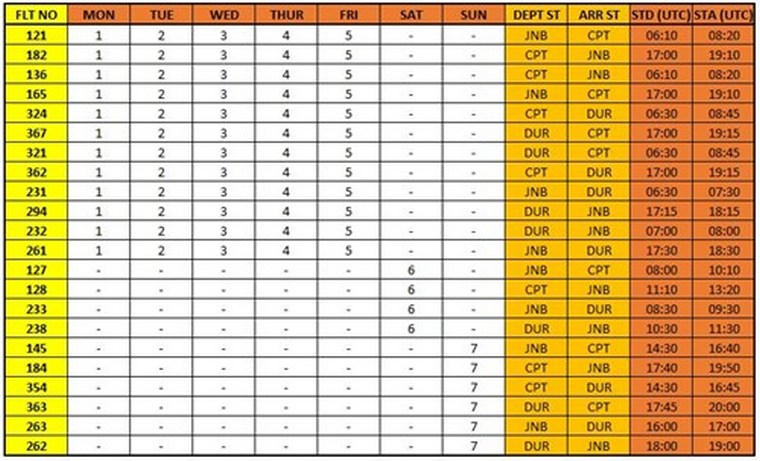 Permitted flights are between Johannesburg, Durban and Cape Town.