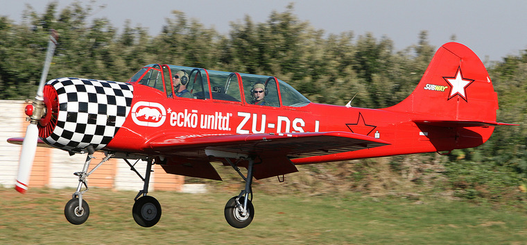Yak 18T flown by Alan Wight with Buti Tsebe checking the positioning.