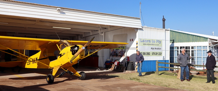 NAM outside Alpi Aviation Flight Academy's Hangar with Brian Davidson, an instructor at the school, Jan Hanekom who Mieg had send solo some years ago and Mieg.