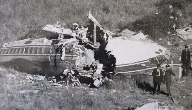 The wreckage of the SAA B707 ZS-EUW at the crash site