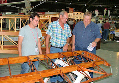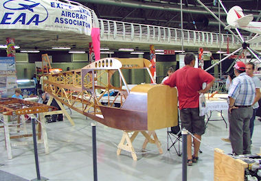 The stand is awesome with all things aviation, a huge EAA Banner and a windsock hanging from the mezzanine above. It's quite impressive, especially the 48% Scale Super Cub, a beautifully built SkyWorx Teddy fuselage and a rebuilt Stampe wing on display. The uncovered fuselage and wing are perfect examples of superb workmanship for everyone to see.