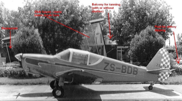 ZS-BDB with the clubhouse in the back ground.
