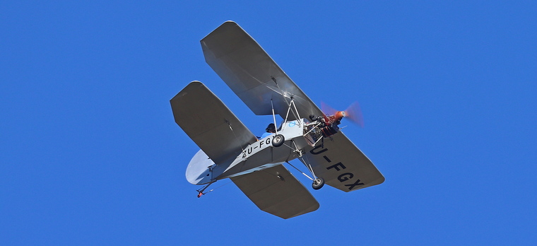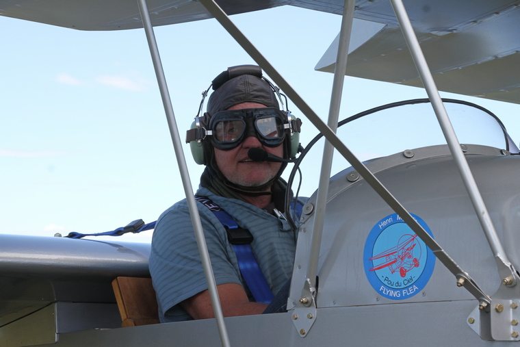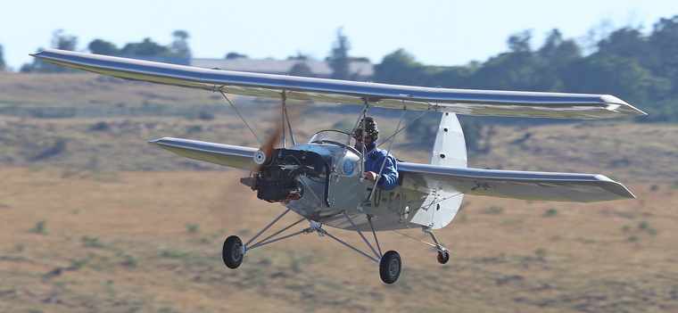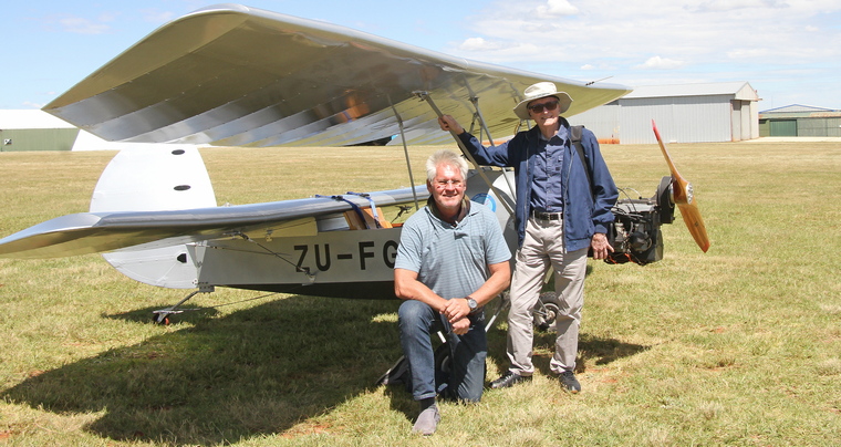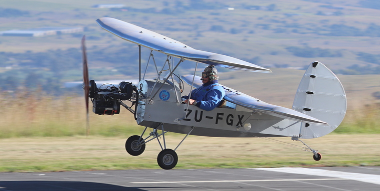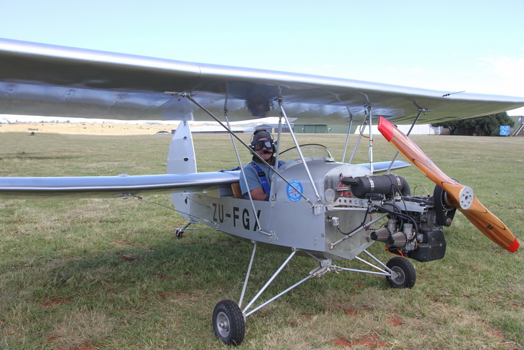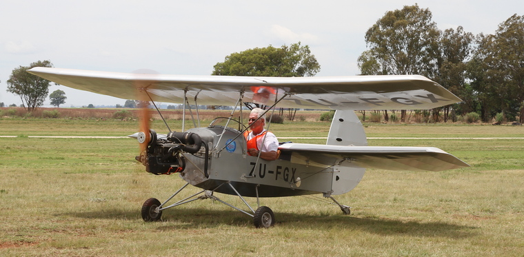 Flying Roy De Staedtler's Flea 27.03.2021By Dale de Klerk. Photos by Willie Bodenstein![]() I was originally approached by a very good fried of mine, the late Mike Spence, to test fly the Flea as Roy and I had never met. I have been very fortunate in my flying career to have met and been mentored by people like Mike. There were several others that I'm not going to mention here. But it taught me that there is a time to give back as well. The flea at her first public appearance at Orient during the Children's Flight. November 2020 I have a total of 6100 hours of which over 3000 is on conventional undercarriage. (Tailwheel). As I have done over 450 hours of test flying and in excess of 32 maiden flights, I was confident that I could handle this one. Because of the uniqueness of this aircraft and the enthusiasm of Mike and Roy, this was an opportunity to give back some of what I had received. I did quite a bit of research by contacting the few pilots around the world that had flown a Flea. They all warned me that it was unconventional. Not like anything else I had ever flown. Overhead FAKR Just to put everyone in the picture of "Unconventional" The Flea has no ailerons nor elevator. It does have a joystick and a set of pedals. The pedals are connected to the tailwheel and are only used for taxi purposes. The tailwheel has no effect once more than 50% power is applied. The joystick is connected to a very effective rudder. So your directional control is manipulated by the joystick once you apply power. The joystick is also connected to the front (Main) wing and controls a pitching moment of this wing. The rear wing is fixed. So, the three axis of control are: Yaw. Which is controlled by the joystick via the rudder. Roll: Which is controlled by the secondary effect of rudder. Pitch: The airframe doesn't really pitch. Only the main wing changes angle of attack and gives more lift or less lift. If you change the throttle setting there is a slight pitching moment. Landing approach to FAKR I started with some high speed taxi exercises on a very long and wide grass runway. Contrary to popular belief, "High speed taxi" is never higher than the stall speed of the aircraft. Although we had not determined the stall speed on this aircraft, we had some documentation on others that had flown. As far as I'm aware, only about four more, world-wide. This process was already quite daunting. My natural instinct was to try and steer with my feet as any good pilot would. But the pedals (Tailwheel) had absolutely no effect whatsoever. With my brain now in overdrive, I soon learned to keep directional control with the stick. As I increased the speed on every run, I could feel the aircraft getting lighter and lighter. (Wanting to get airborne). Now again my instincts told me to lift the tail. But again, the stick had no effect as there is no elevator. And by pushing the stick forward only creates a negative angle of attack on the main wing, keeping you firmly on the ground. I then tried to keep the stick as neutral as possible until she started flying. The first hop was only about one meter high and no further than 10 or 20 meters, as I shut the throttle. I did a few more, every time stretching the distance by keeping just enough power on. This gave me a chance to feel the effect of the controls and how she reacted to very small inputs. She would tend to yaw to the right under power. This has to do with the thrust line of the engine to counter the torque and slipstream. At first, I kept trying to correct this but then the secondary effect dops the wing. Eventually I just let it yaw a bit but kept the wings level. The hops got progressively higher and longer. Because there are no brakes, you need to land with enough stopping distance ahead. On one of these hops, I was so busy checking control inputs verses the effect that I ran out of runway. I was now airborne and forced to do one full circuit. It felt like about 15 minutes but probably wasn't more than 5 or 6. Almost there The approach was uneventful as it was a very calm day. The fun started once I had touched down and my instinct was trying to steer with my feet again. Fortunately, my brain went into overdrive again and I caught it with the stick before getting totally out of control. Once down to taxi speeds, the tailwheel took effect again. Fortunately, lockdown was implemented and that gave me a year to ponder about what had happened. I have now done some more hops, more circuits and a flight from Orient to Krugersdorp. The take-off's are still challenging but once straight and level, she is quite docile. The real challenge comes when you encounter any turbulence. The aircraft doesn't have a slip ball because you wouldn't be able to keep the ball in the middle anyway. But when she drops a wing, the only way to pick it up is to apply rudder with the stick which gives you a yaw effect and the secondary effect is roll, which lifts the wing. All good and well, but now you're pointing in a different direction! This becomes especially relevant when on final approach at FAKR. A narrow runway and inevitably, turbulence on short final. Your left wing drops. You pick it up with right rudder but now you're heading off to the right. So, you apply left rudder to line up but your left wing drops! The only way to counter this is to keep turning left through the centreline, then coming back to the right to pick up the wing. Problem is, you tend to get into a left, right osculation. And that's not good on a narrow runway. It's going to take a lot of time and many take-offs & landings before I get comfortable. All smiles after the maiden The bottom line is that your instincts should not come into play and you need to be wide awake when flying this little plane. I would imagine the it will get better with practice. I am humbled and honoured to be the first pilot in Africa to have flown the Flea. There will surely come a time when another local pilot gets a chance to fly her. The