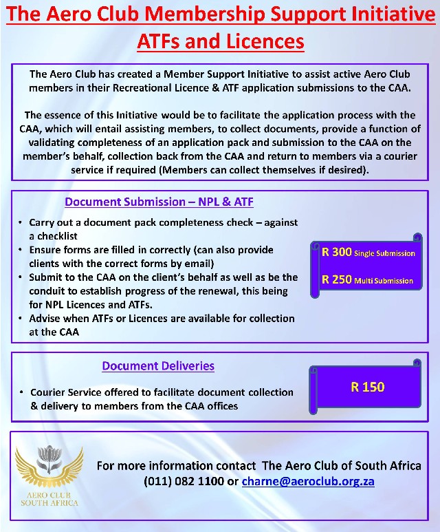 | MIDWEEK UPDATE 15 APRIL 2021      COVID 19 REGULATIONS, INITIATIVES AND AEROCLUB NEWS OUR CENTENARY YEARBOOK IS NOW AVAILABLE TO PURCHASE FROM OUR NEW WEBSHOP WWW.AEROCLUB.ORG.ZA/SHOP     R1,000.00 WORTH OF PRIZES - THE CHOCK NORRIS AVIATION THEMED PHOTO CONTEST The competition entries closed on 31 March 2021 Contestants, please note multiple votes from one device will only be counted once and may led to the entry being disqualified. Vote now for April week three entries  Vote for Apr3.1 Vote for Apr3.2 Judging: 1. The Pilot's Post team will select the 2 best photos submitted every week and add them into our "Midweek Update" published every Thursday morning, where our readers will then cast their votes by simply clicking the link below the photo of their choice. 2. At the end of each month, a complete article will be published on Pilot's Post to include the weekly photo submissions with the most reader votes. Our readers will then again have the opportunity to cast their votes by simply clicking on the link below the photo of their choice. The photo with the highest number of votes will then be judged the Winner of the Month. 3. A prize of a set of Chock Norris personalised Aircraft Chocks with leather storage bag valued at R500 and a voucher from the Pilot Shop valued at R200.00 will be awarded to each monthly winner and a soft cover copy of the Aero Club of South Africa's Centenary Yearbook valued at R300.00 sponsored by Chapter 322 of the EAA of SA  EAA CHAPTER 322 With our MACH program (Member Awards for Chapter Help), your membership could win you a trip to Oshkosh! Click on the link below today to renew or join! www.eaa.org.za/membership/membership-form or for EAA membership information go to www.eaa.org.za  The following events will to take place under the rules controlling the number of people congregating together and are therefore not open to the general public. 15 TO 17 APRIL National Rally Flying Championships - Stellenbosch Airfield. Contact frank.eckard@mweb.co.za Tel: 083 269 1516 17 APRIL Robertson Flying Club annual breakfast fly-in with spot landing competition. Contact Alwyn du Plessis E-mail: boeredata@breede.co.za Cell: 083 270 5888 17 & 18 APRIL Sports Aerobatics Club Eastern Cape Regionals Wings Park Airfield. Contact Annie Boon E-mail: chunge@mweb.co.za 24 APRIL EAA South Africa at Middelburg Airfield AGM: - details to be announced 23 & 27 APRIL Aero Club Airweek at Middelburg Airfield. Contact Rob Jonkers E-mail: rob@aerosud.co.za Cell: 082 804 7032 27 APRIL SAPFA Middelburg Speed Rally at Middelburg Airfield. Contact Jonty Esser E-mail: jonty@promptroofing.co.za Cell: 082 855 9435 30 APR TO 2 MAY 2021 North meets South @ Gariep 2021. Venue: Gariep Dam. Tommie Jordaan. WhatsApp : 0828023221 email : tommie.jordaan@icloud.com  1 MAY Military and history festival. Voortrekker Monument, Pretoria. For more information bemarking@ vdm.org.za 5 MAY EAA Chapter 322 monthly meeting virtual and in person at Dicky Fritz MOTH Hall, Edenvale. Contact Neil Bowden E-mail: neil1@telkomsa.net Cell: 084 674 5674 8 MAY SAPFA Sheila Taylor Navigation Rally at Krugersdorp Airfield. Contact Frank Eckard E-mail: frank.eckard@mweb.co.za Cell: 083 269 1516 8 MAY Battlefields Country Lodge and Sports Resort annual fly-in. Contact Dave O' Halloran E-mail: gm@battlefieldslodge.co.za Tel: 034 218 1614 8 MAY Zandspruit Fly-In. Limited space. R150 per breakfast and refreshments. RSVP flyem4@flyem4.com. Deon 076 901 7606 8 & 9 MAY Sport Aerobatics Club KZN Regionals Ladysmith Airfield. Contact Annie Boon E-mail: chunge@mweb.co.za 22 MAY A gathering of Chipmunks at Springs Airfield. We invite all to join the celebration at Springs Airfield. The ERFC will be hosting their annual Breakfast fly-in on the day too. Breakfast will be available for all who fly in. 20 TO 22 MAY SAPFA President's Trophy Air Race at Ermelo Airfield. Website: www.sapfa.co.za E-mail: Race@sapfa.org.za Contact Rob Jonkers E-mail: chairman@sapfa.co.za Cell: 082 804 7032 29 MAY SAA Museum Society Airline Collectables Fair - Rand Airport. Contact E-mail: info@saamuseum.co.za Cell: 076 879 5044 28 TO 30 MAY RC Jets over Utopia. For more information contact Dave 082 455 1071 or Clint 082 894 2068 30 MAY Fly-Mu breakfast fly-in and music festival at Springs airfield. Contact Fanie E-mail: ansan@tiscali.co.za Cell: 083 789 5507   WEARCHECK AIRCRAFT KITS DONATED TO AMS "We are grateful for the donation of G2 Aircraft Kits as it will allow our in-house Aircraft Maintenance Organisation (AMO) to continue maintaining the AMS aircraft in meeting the Manufactures and Civil Aviation Authority requirements, thus ensuring that we provide a safe and efficient aero-medical service to all those in need." said Dr. Philip Erasmus, AMS CEO. The AMS is a non-profit aero-medical rescue organisation - based in the Western Cape (Cape Town & Oudtshoorn), KwaZulu-Natal (Durban) and the Eastern Cape (East London, Gqeberha - formerly known as Port Elizabeth and Mthatha) working in partnership with the various Provincial Departments of Health in South Africa to ensure that the National Health System is strengthened through the provision of rescue, air ambulance and rural health outreach services. The AMS is the only operator in Southern Africa that offers a complete package of air-ambulance, health outreach and rescue service; reaching peripheral remote communities who previously had little or no access to healthcare services. "We at WearCheck are in awe of how many lives the AMS teams have saved, and how many people are assisted by this wonderful service every single day. To help the AMS reach even more communities, WearCheck has sponsored the condition monitoring of the 11 aircraft operated by the AMS with WearCheck aircraft kits." Technical Manager for WearCheck, Steven Lumley, is delighted to help the AMS. "This gesture is in thanks for the incredible work you all do and the countless lives you save. We want to keep you airborne. We will supply aircr