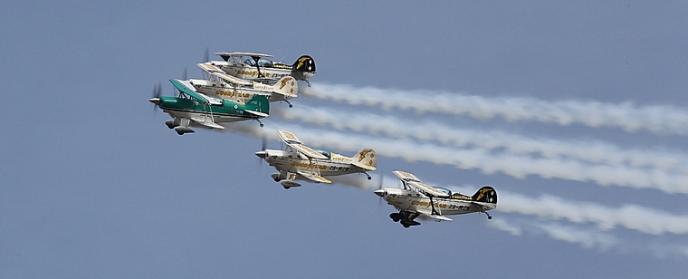 Arguably the formation of the day was that of the Boeing Stearmans, Waco, Antonov and Yak 55 flypast. A Waco has not been seen for many years.