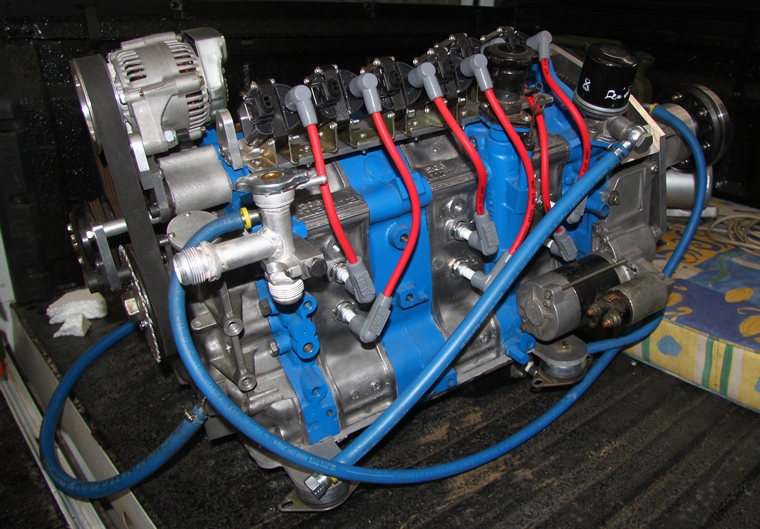Rob's Titan P-51 is fitted with a Mazda rotary engine (20B model) that is capable of developing 300 hp. With this engine Rob expects a cruise speed of 150-180 mph. The Mazda rotary is a remarkable capable engine with only 4 major moving parts. The water pump has been extensively modified to fit the narrow confines of the engine compartment and the coolant lines extend back to the belly scoop, as in the original aircraft.