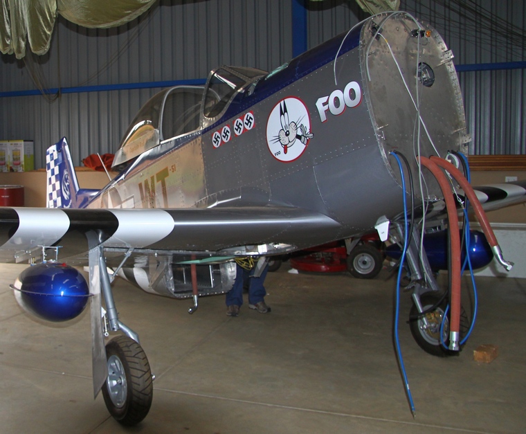 Foo-Fighter, Rob McFie's Titan T-51 is a 2/3 to ¾ scale replica of the famous American air force 2nd World War fighter, the legendary P-51 Mustang. This particular replica is modelled after the 'D' variant, which is unarguably the most iconic version of the P-51.