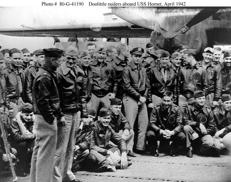 Of eighty men, three of the four surviving members of Doolittle's Raiders, all now living their ninth decade, met publicly -- and, they say, for the final time -- during the week of April 15, at Eglin Air Force Base, to commemorate the 71st anniversary of their April 18, 1942, one-way mission to bomb Japan. The three members present were 97-year-old Col. Richard Cole; 91-year-old Staff Sergeant David Thatcher; and 93-year-old Lt. Col. Edward Saylor. The fourth surviving member, 93-year-old Lt. Col. Robert Hite, was unable to attend the reunion. All of the men had trained for the mission at Eglin in the winter of 1942. And this year Cole was afforded a flight (and reportedly flew a good portion of it, including the landing) in a B-25 owned by Larry Kelley. The men say they toast each year to the comrades who shared their mission and have since passed. But they have decided a special toast will now come sooner than originally planned.