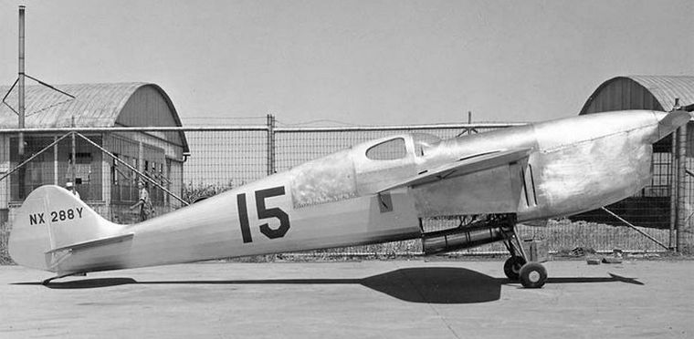 A mid-winged conventional aircraft with a long and slender welded steel tube fabric covered fuselage, it had thin spruce wood plywood covered wings with split flaps. The conventional tailwheel landing gear was retractable. Powered by a 400 hp (300 kW) Menasco C6S Six cylnder supercharged inline piston engine, it was capable of a maximum speed of 267 kts (307 mph, 494 km/h).