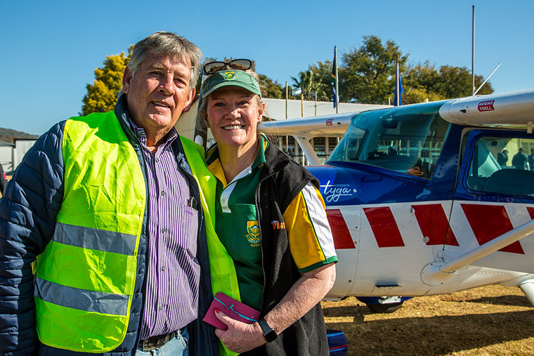Nigel Hopkins and Mary de Klerk receive their envelop of instructions, taking off and “arriving” in ZS-PVY.