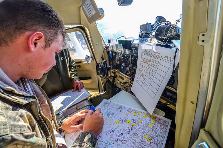 Piet Meyer and Adrienne Visser preparing their plots and reading instructions, taking off and landing in ZU-DUU.