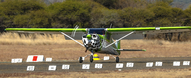 Apie and Frederik Kotzee receiving their envelope of instructions, taking off and landing in ZS-OWF.