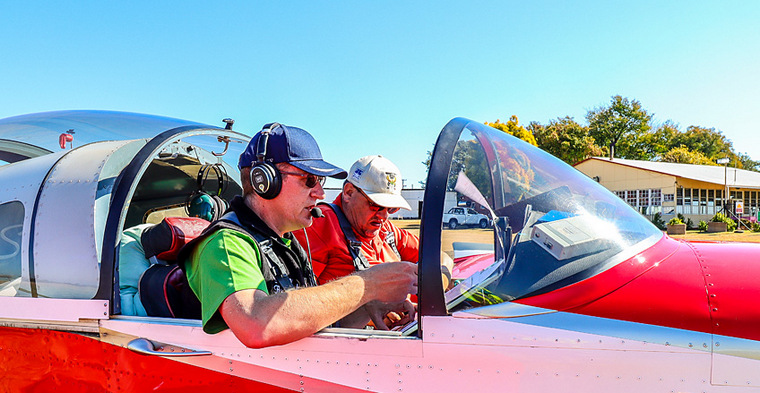Hendrik and Jandre Loots getting to grips with the contents of their instructions, taking off and landing in ZU-IHK.