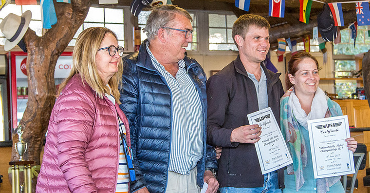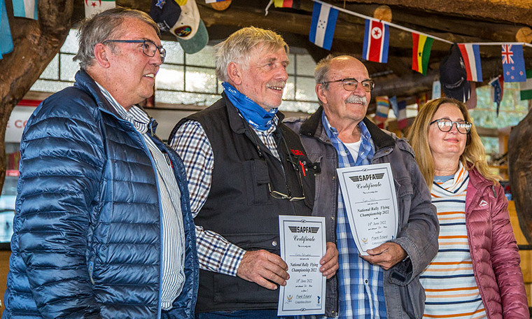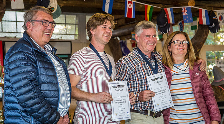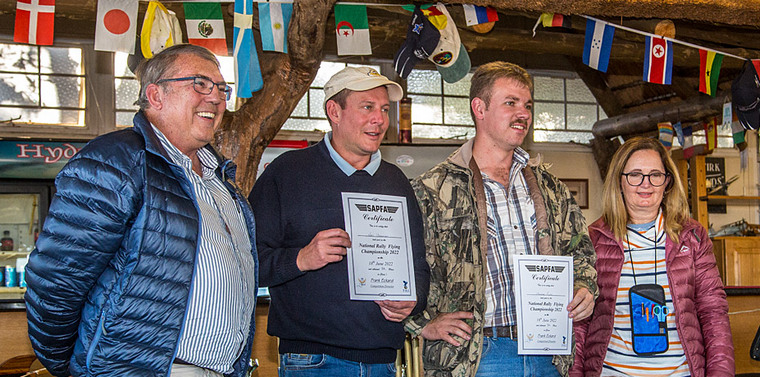 And the winners of the 2022 SA National Rally Championships were Nigel Hopkins and Mary de Klerk - 833 points overall, with Nigel being placed 2nd in Landings - 100 points (with some very “creative” efforts, testing the rules fully!), and team 1st in Observation - 565 points and 1st in Navigation - 168 points.
