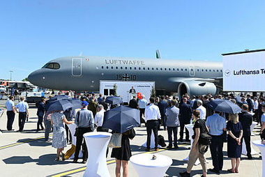 Airbus's static display featured state-of-the-art aircraft, unmanned aerial systems (UAS) and helicopters. Visitors were able to explore the A350-900 MSN 2 (Airspace Explorer) and the oversize cargo transporter BelugaXL. The static display also featured state-of-the-art helicopters such as the H145M, H225, an NH90 replica and drones such as Luna NG or DT25 that were used in recent manned-unmanned teaming demonstrations. Airbus military aircraft were also be in action on the German Luftwaffe display, both on ground (Eurofighter and A400M) and in the air (Eurofighter, A400M, A330 MRTT and Tornado).
