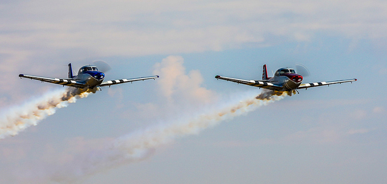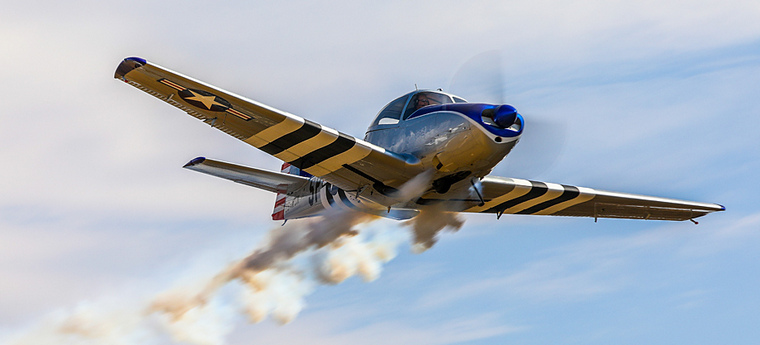 Navions flying with smoke on in the dramatic cloud backgrounds.