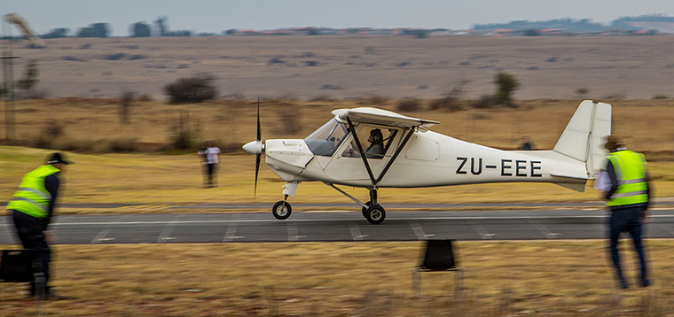 Landings by Marie Reddy in Ikarus C42 ZS-EEE, Michael Wrathall in PA28 ZS-JLP and Juandre Jansen van Vuuren in IBIS Magic GS700 ZU-IBS.