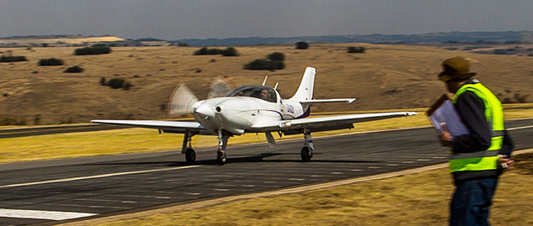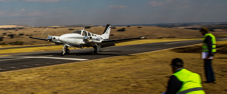 Landings by Dieter Bock in Lancair ZU-DCB and Louis Fourie in Baron 58 ZS-KMZ.