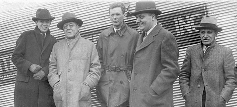 A Ford Trimotor flown by Charles Lindbergh began the first coast-to-coast air passenger service through Transcontinental Air Transport (TWA).