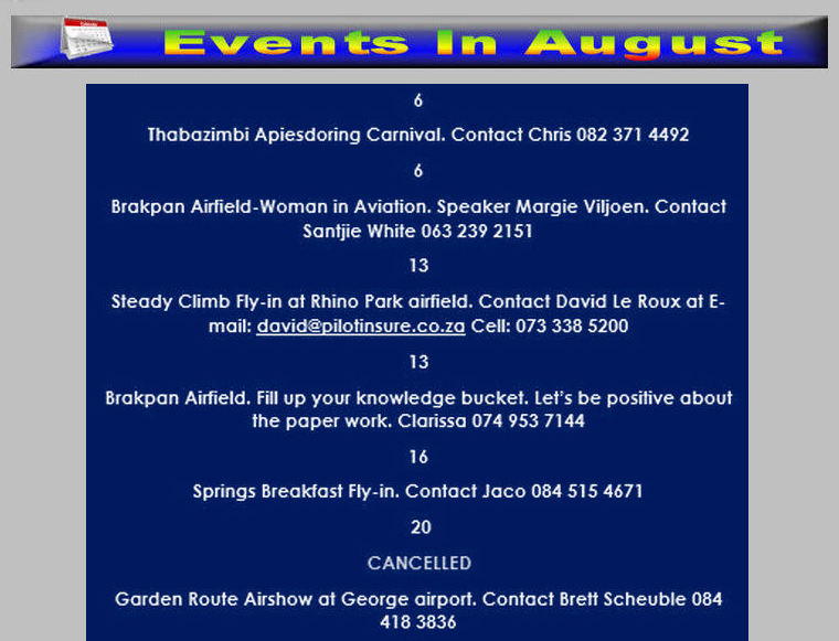 On 21 July, a 28 Squadron C-130BZ arrived at Richards Bay delivering cargo from AFB Waterkloof. The aircraft unloaded its cargo of rations and water and took off soon afterward for the return flight to Centurion.