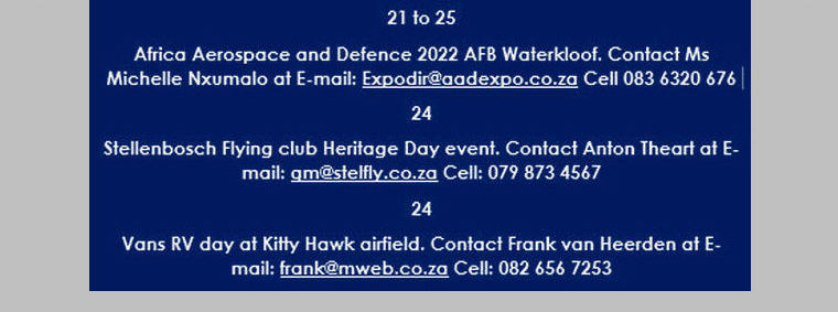 SAAF sorties out of Richards Bay Airport in support of Shared Accord 2022 activities were carried out by Pretoria-based squadrons: 17 using two Agusta A109 LUHs from AFB Swartkop and 41, a Cessna 208 Caravan from AFB Waterkloof.
