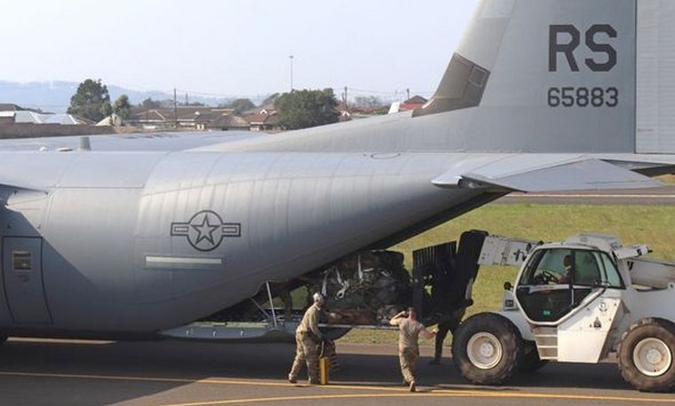 The four-engine Lockheed Martin-built workhorse of the USAF 86th Airlift Wing staged from Ramstein air base in Germany and was used for trooping and equipment movement as well as being the "leading light" in a tactical air landing operation (TALO) at Richards Bay Airport on 20 July.