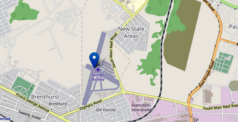 There are two runways, 3/21, which is 1600 metres long and 14/32 a 554 metres grass runway. The co-ordinates are -26.2494, 28.39827. Visitors must be on the lookout for tall smoke stacks in the area.