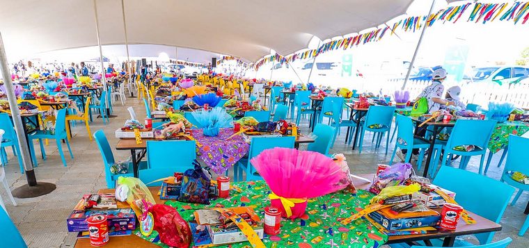 The main tent awaits its various goodies to host the 500 children just before the sun rises.
