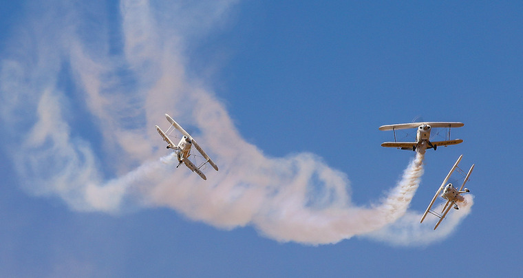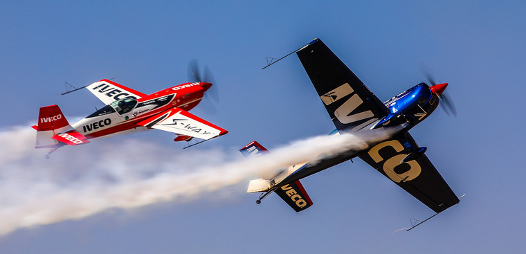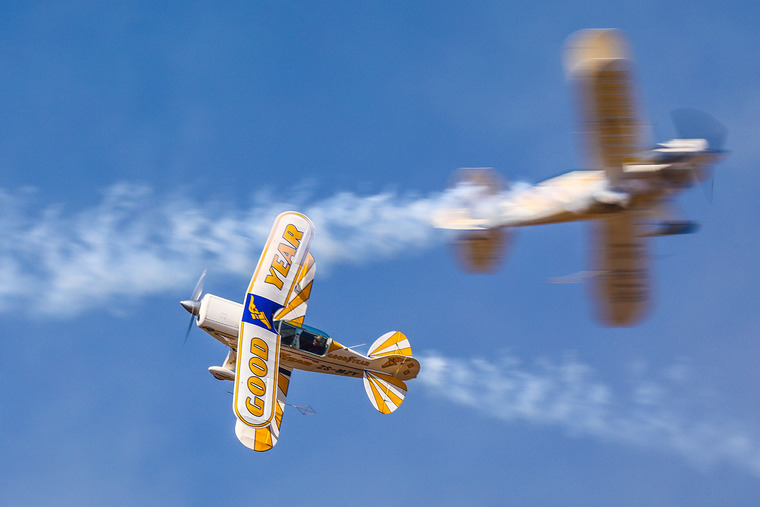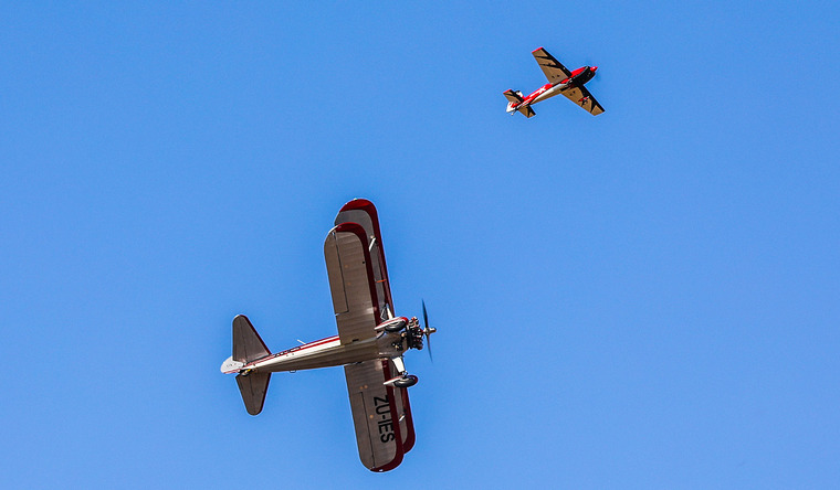 Ivan van der Schaar and his son, Jeandre flying formation with the Stearman and radio controlled Extra.
