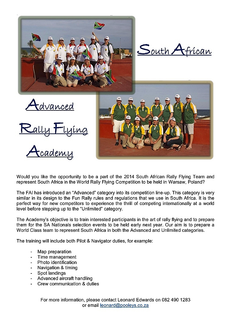 22-26 May. Presidents Trophy Air Race, Oudshoorn. E-mail roblena@mweb.co.za
