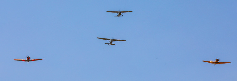 The SAAF Museum Historic Flight C185, Bosbok and two Harvards were the next formation in the flypast.