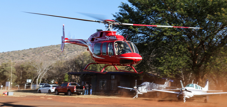 It was a cool and perfect sunny morning at Thabazimbi Airfield with some banks of grey clouds appearing only at midday from the North. The organizers of this year's event, Chris Ehlers, Gert Ehlers & Gerhard Barnard, were all anxious and apprehensive as to how this day would turn out. Silence at the picturesque Thabazimbi Airfield was filled with the fly-pass of the signature Beechcraft Bonanza engine sound and approaching Bell 206B of Chris and Gert Ehlers next to the airfield where I stayed in the superb Thabazimbi Quest House. It was thereafter boosted with the sound of approaching prop engines at constant intervals. The first visiting aircraft parked at 07h50. The annual Thabazimbi Apiesdoring Carnival fly-in had officially started.