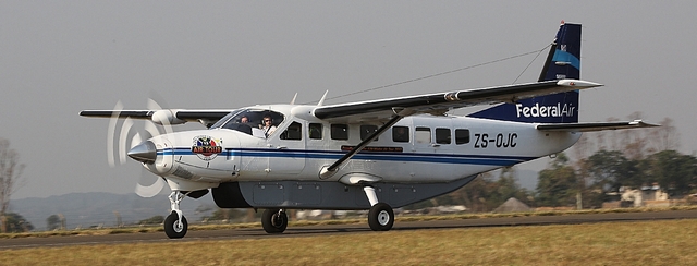 Federal Air the official airline for the KZN Winter Air Tour landed with the dignitaries in their Cessna 208B Grand Caravan ZS-OJC.