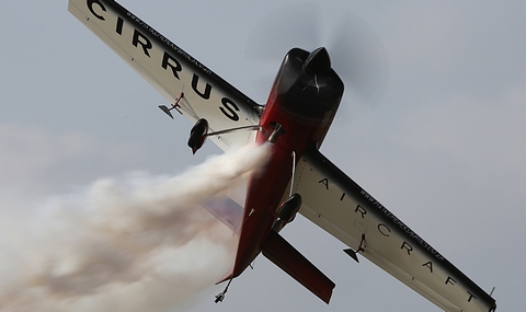 Michel Leusch was next up in the lineup to display his Super Decathlon in a nail-biting aerobatic display.