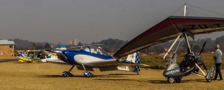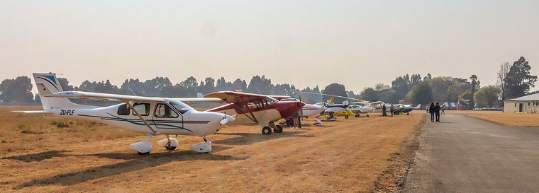 During the course of the morning, about 35 aircraft flew in, with some of the early arrivals departing before the last arrivals. There were varied aircraft types present, including a number of microlight types, Jabirus, RV's, Cessnas, Pipers, Jodel, Aeronca, Puma Flying Lions Harvard and an Alouette III. People flew in from various places including Vereeniging, Brakpan, and Eagles Creek. A good number of EAA people, including stalwarts like Carl Jensen who are regular supporters of such events were also present. Many attendees also drove in.