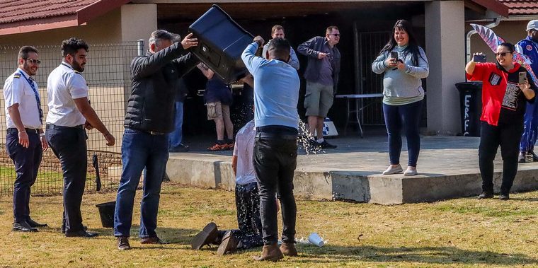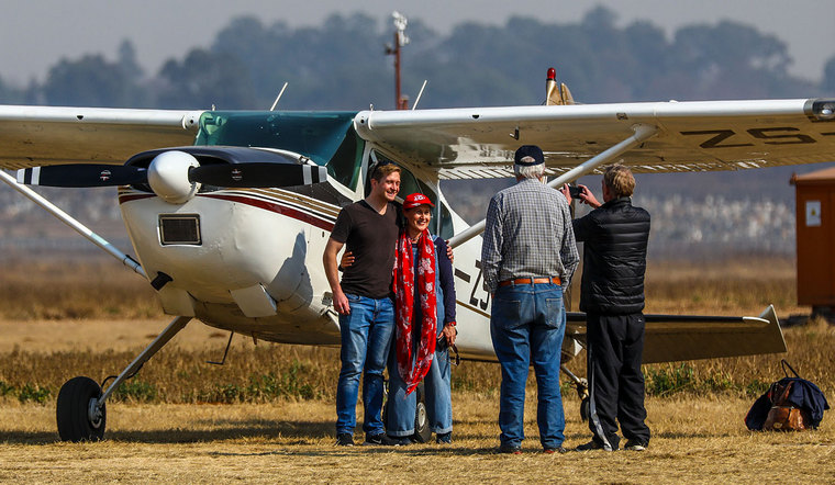 During the morning, the local flying school, Mach 1, gave their latest solo pilot, Heinz - a matric student, his customary ice and mud bath to bring him back down to earth, which generated loud cheers and clapping from the pilots present. Discussions then turned to reminiscing about their own first solo's.
