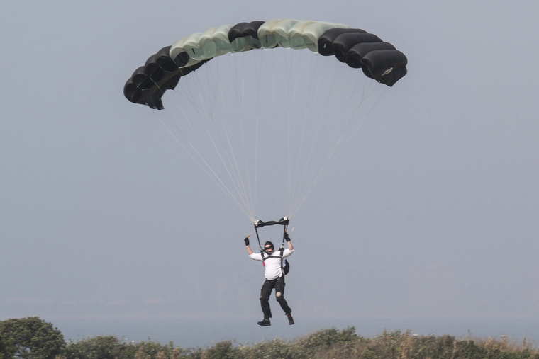 The show commenced at 10 o'clock on the dot with four skydivers being taken aloft in a Gazelle helicopter. The jumpers from Durban Skydivers provided a wonderful start to the show coming in fast and landing with pinpoint accuracy at air show central. The first group to jump were Vernon Kloppers, Bob Simpson, Michael Nyman and Dave Ladell. Later there was a second jump this time comprising Roy Steemson, Michael Nyman, Alan Hosmer (Capital Sounds canopy) and Dave Ladell. The Drop Zone Officer was Ian Douglas (a man with over 9000 jumps to his credit).