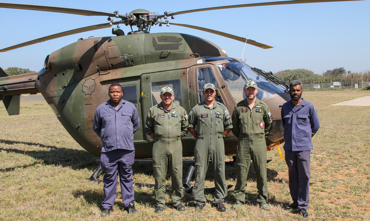 Then the South African Air Force flew their impressive Eurocopter-Kawasaki BK-117A-3 (380). The display involved winching down two people and then picking up two barrels in a cargo net. Excellent flying to show off the capabilities of this machine. They also demonstrated the search and rescue abilities picking up a 'patient' using the rear cargo doors. The BK117 demonstration was flown by Major Corrie Oberholzer with Flight Sergeant Coert Steynberg as his Chief Engineer. The rescue demonstration was flown by Captain Jared Oliver with Coert Steynberg. It was Steynberg's farewell flight as he is retiring. Also at the show was a hero Captain Matthew Allan, who was on board an Oryx helicopter in the DRC, when a sniper shot killed the flight engineer and wounded the pilot. Captain Allan moved the injured pilot and took over, flying them back to base. He received an ovation from the crowd when his heroism was announced.