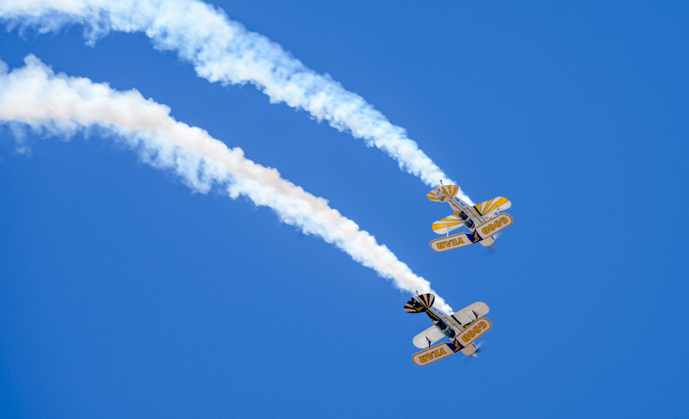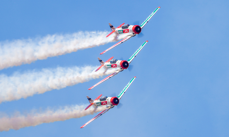 At the Aerodome, the sky filled with the rumbling sound of the radial engined Harvards of the Flying Lions Display team. The three ship formation flew perfect low level displays which is always a treat to see with their thick display smoke, which makes them synonymous with the term Smoke-on-Go!